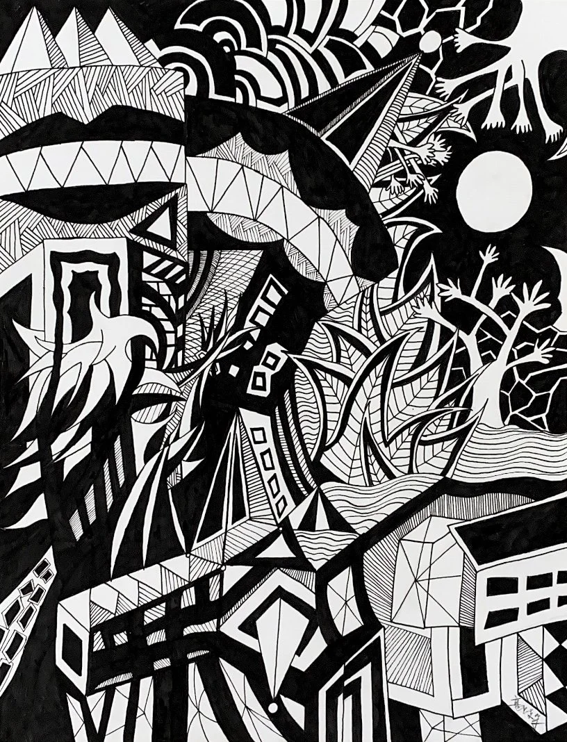 "The Madness of Greed" 11 in× 14 in Black ink on paper